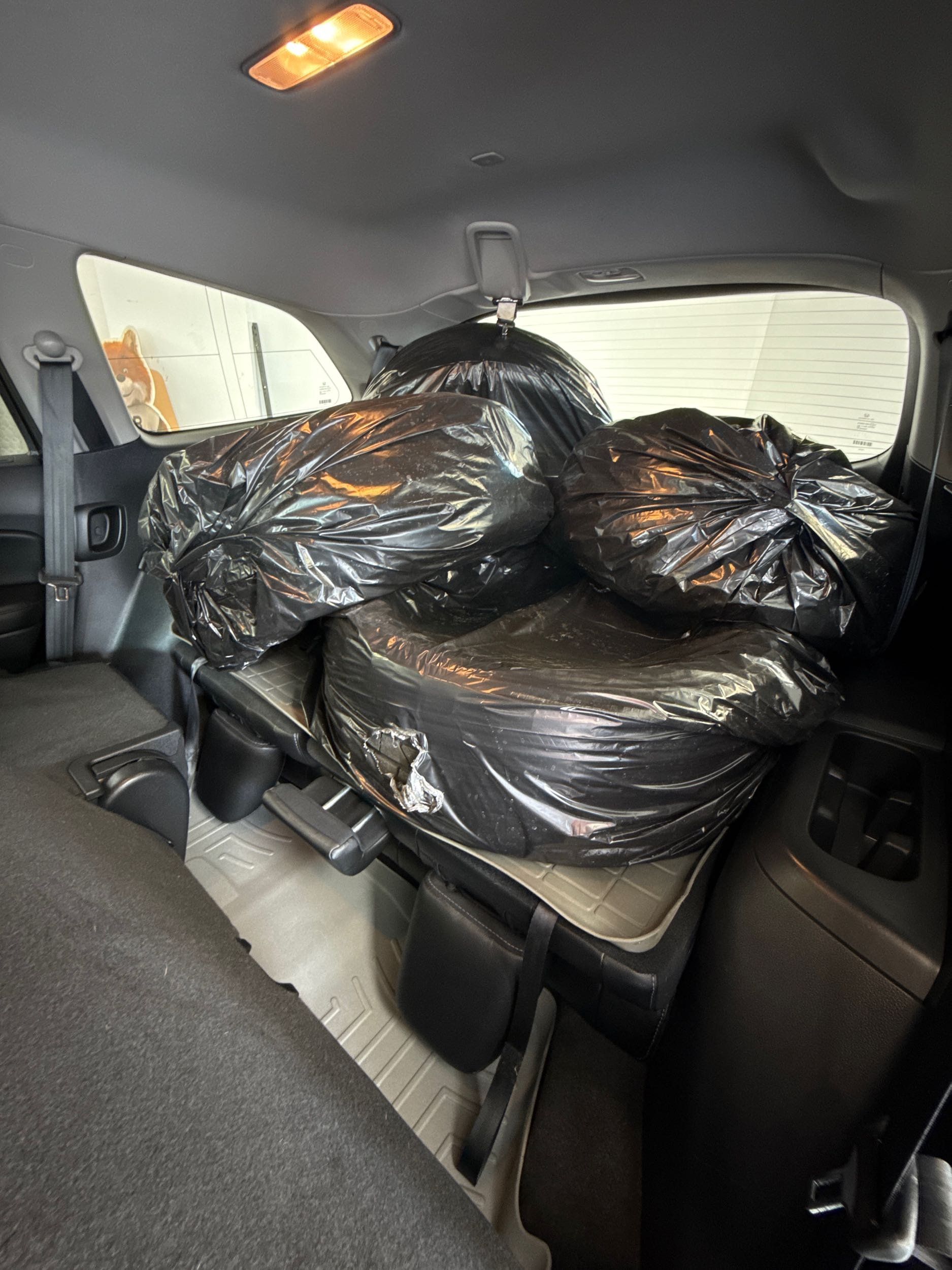 Third-row seatback upholstery: Carpet third-row seatback upholstery