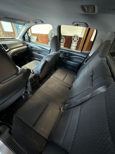 Front seatback upholstery: Plastic front seatback upholstery