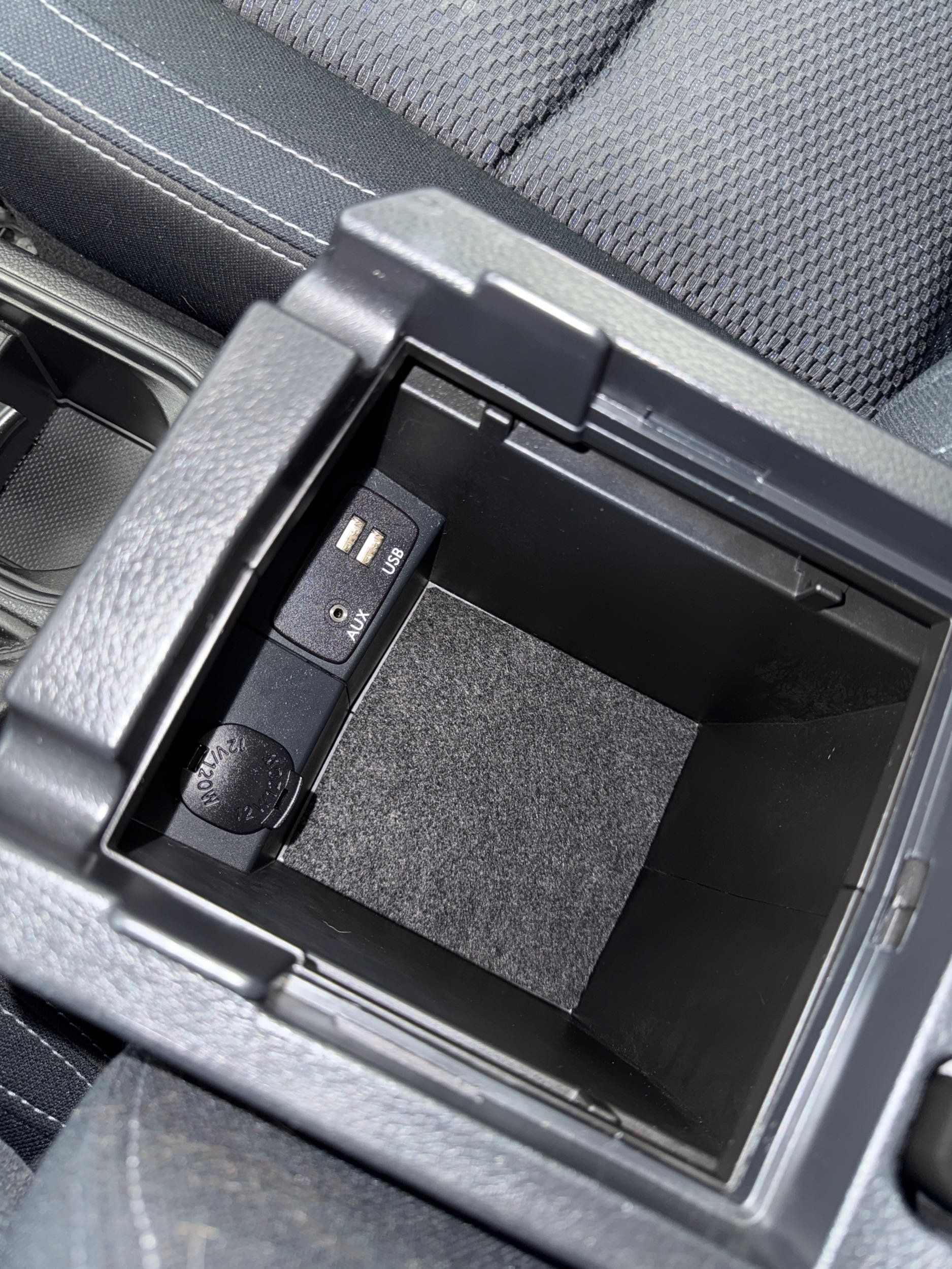 Floor console storage: Covered floor console storage