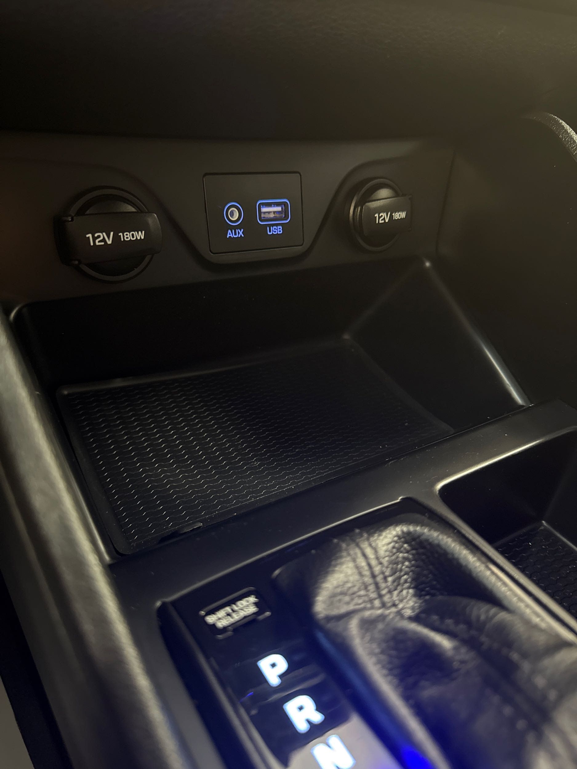 Floor console storage: Covered floor console storage