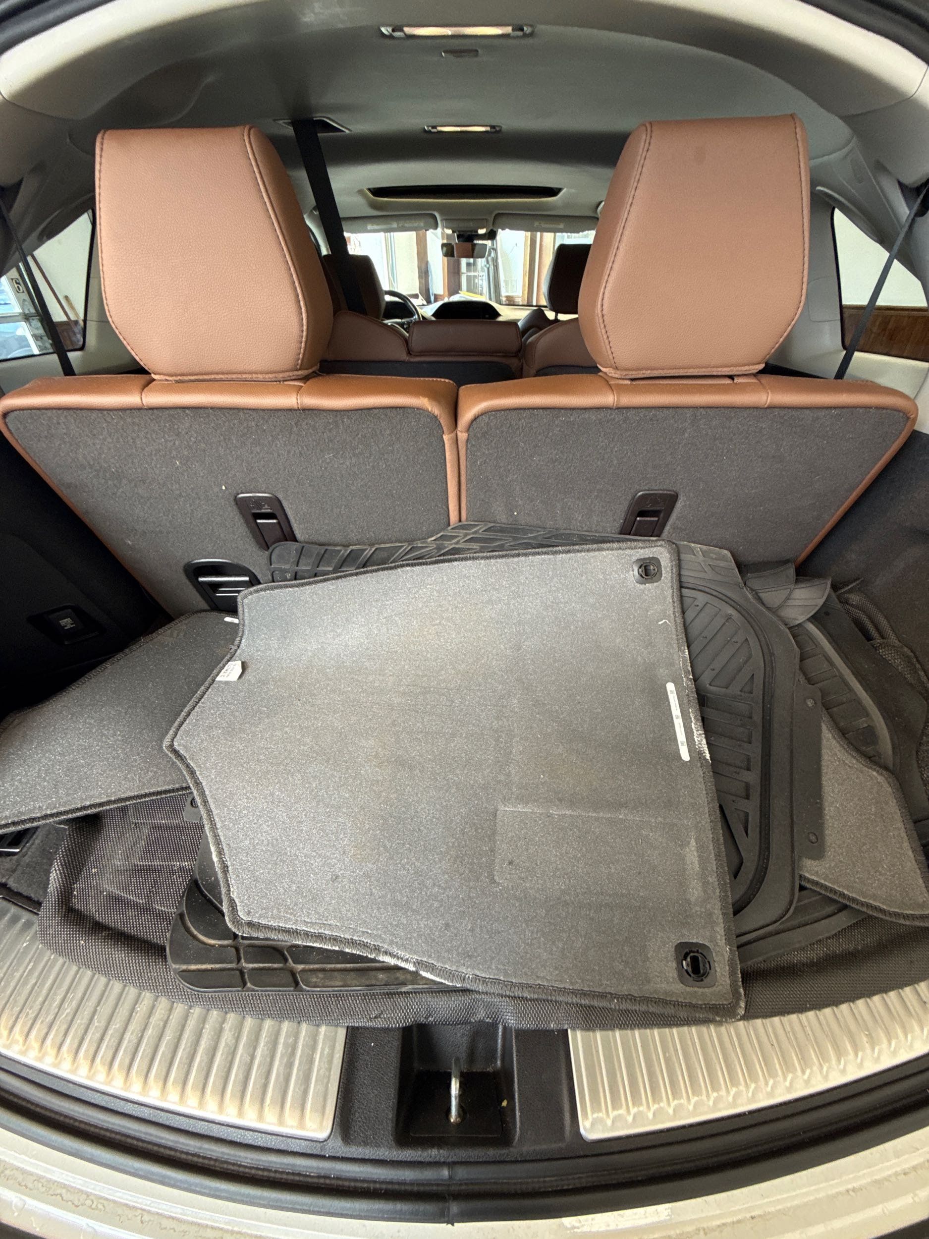 Third-row seatback upholstery: Carpet third-row seatback upholstery